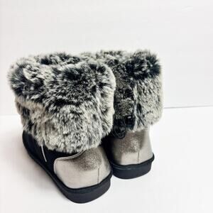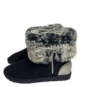 MY SOFT BLACK SILVER BLACK FUZZY WOMEN ZIPPER BOOTS SIZE 7 NEW WITH TAGS