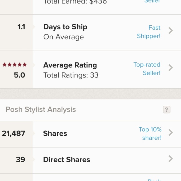 I am a Poshmark Ambassador. Shop with confidence. I have 5 star ratings and average ship time of 1 day!