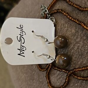 MY STYLE Brown Glass Beaded Necklace Earrings Set