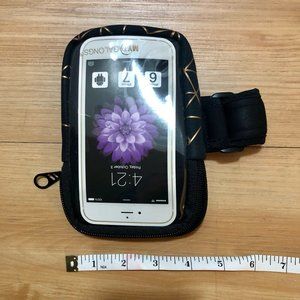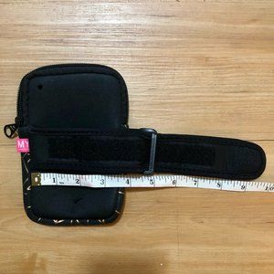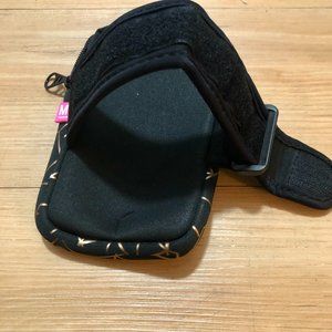 Perfect for running, this black and gold detailed armband from MY TAGALONG has a secure velcro strap and roomy zipper pocket for keys, cards and more.