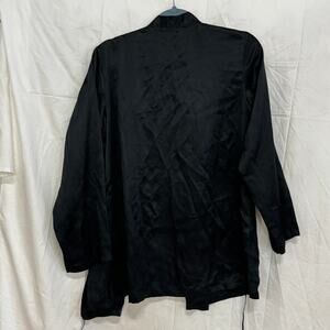 MYK Pure Silk Long Sleeve Open Front Kimono Robe Top Black Women's Size Small