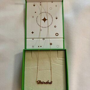 MYKA Deirdre Name Necklace in 14K Yellow Gold 18" - (Name approx 1.5" Long) Solid gold, not plated (marked 14K) 2.06 Grams - New/mint/in box. Box shows wear.