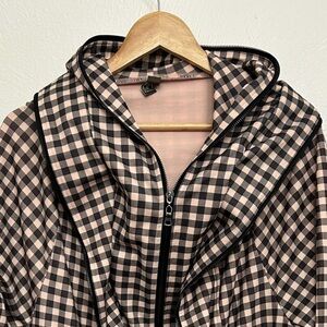 MYMO My Movement Double Zipper Hooded Pink Black Gingham Plaid Jacket Size XL
