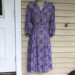MYNETTE purple white floral vintage 3/4 sl. dress