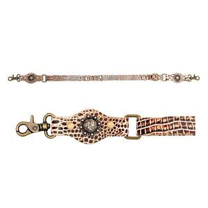 Replace your plain strap and elevate your bag style with this decorative adjustable purse strap from Myra Bag. The antiqued brown and ivory lizard embossed genuine leather and the Concho embellishment adds western flare to any purse.