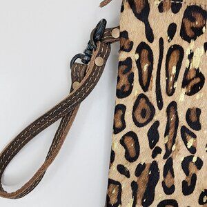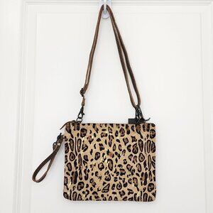 MYRA BAG Freckled Leather Leopard Print Hair-On Crossbody Wristlet Bag NWT