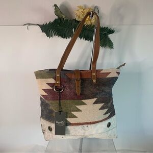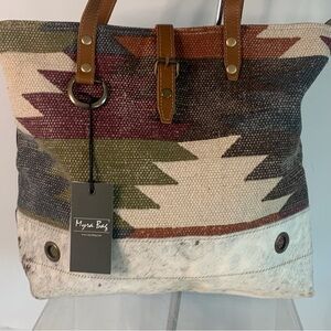 MYRA BAG WOMEN'S CANVAS & HAIR-ON HIDE AZTEC TOTE BAG