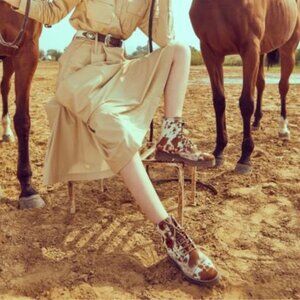 MYRA BAG Women's Helium Brown & White Cowhide Lace Up Boots Size 8 NWT