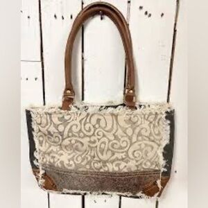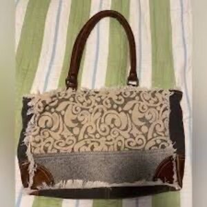 This stylish Myra Bag combines functional design with chic high fashion for everyday use. Please note: each of these bags is truly an original! Slight variations, including stitch marks and minor staining on the canvas, are possible.