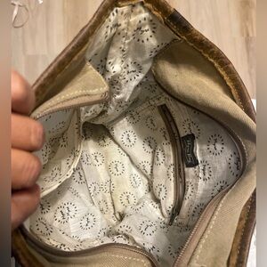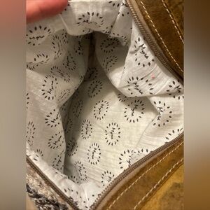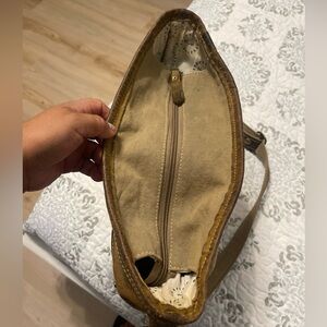 Stylish shoulder bag with a woven pattern. Features brown and tan colors. Perfect for everyday use. In very good condition, no damage, a little dirty inside but on the outside it looks just like the photos, it is adjustable, perfect for daily use, see photos for size