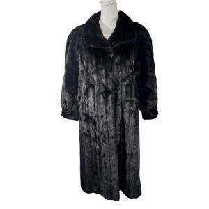 MYSELS FURS! LUXURIOUS BLACK RANCH MINK FULL LENGTH FUR COAT, JACKET! SZ MP