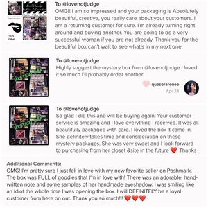 @lovenotjudge Hi!I'm really interested in your mystery box. Since I found your profile, I keep coming back on your page to see and read the comments here. If it is ok to you, can you tag me to some examples of your mystery boxes worth $25 and $35? sorry for my grammar. I am not really fluent in English. :)