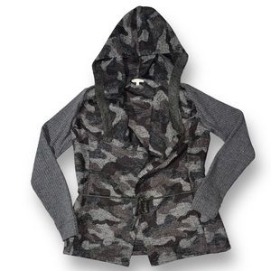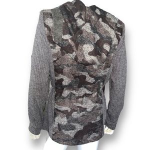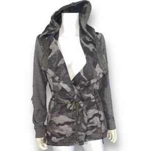 MYSTREE Camo Print Tie Waist Hooded Sweater Cardigan Belt Wrap Jacket Top S