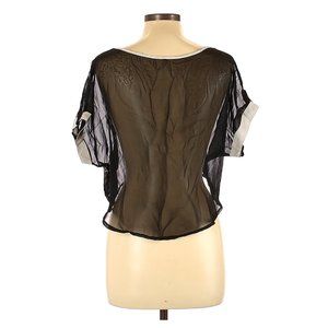 MYTH NYC Short Sleeve Crop Black with White Trim Sheer Blouse sz Large EUC