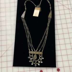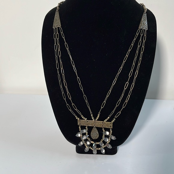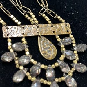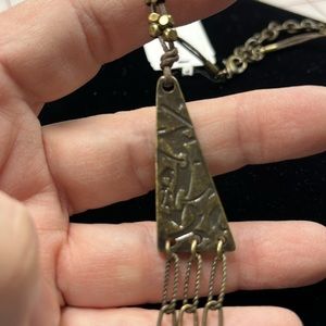 MYTHOLOGIE NWT Ethnic 3 Strand Faceted Stone Pendant Etched Beaded Boho Necklace