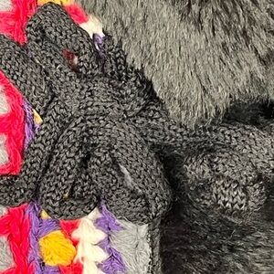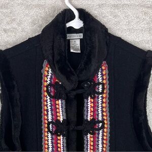 MYTHOLOGY Hippie 100% Wool Faux Fur Trim Vest Boho Hippie Large Scandinavia Knit