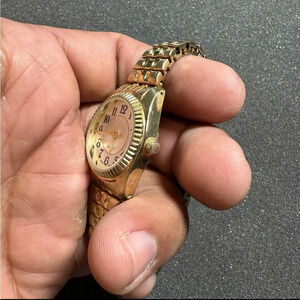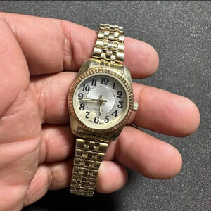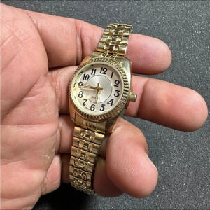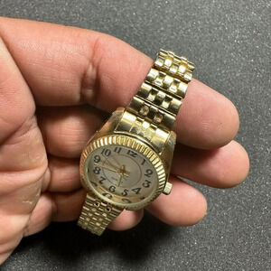 M.Z. BERGER Women's Quartz Watch Gold Tone Stretch Band (WS81) Working shows signs of wear such as light scratches on case band and crystal see pictures for reference