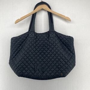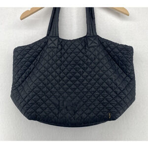 MZ WALLACE Metro Tote Quilted Nylon Leather Trims Travel Shoulder Bag Black