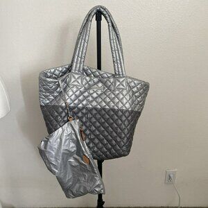 MZ WALLACE TWO TONE GRAY /SILVER TOTE BAG
