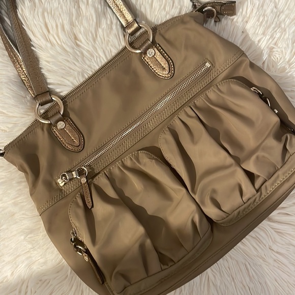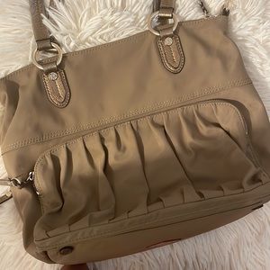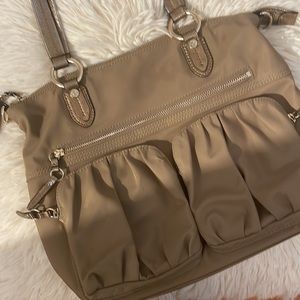 Reposhing this item I purchased from @tyss. Loved the color and lining but style didn’t work for me. Light wear including exterior stains. Unavoidable with a bag of this light color. Great try me price! No long strap when purchased nor included with this sale.