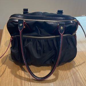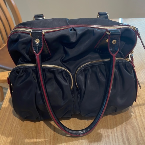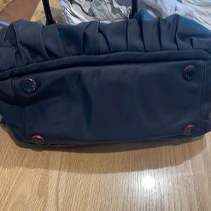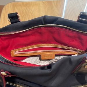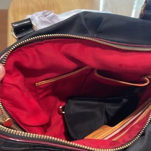 Black nylon handbag with leather handles and detachable pouch- good condition
