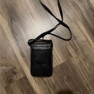 Sleek black crossbody bag with adjustable strap. Perfect for everyday use. Excellent condition! 8” x 5”.
