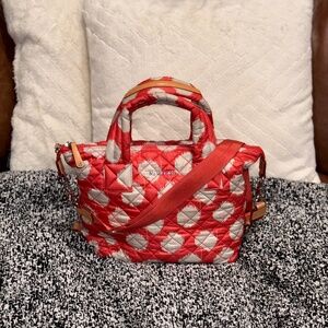 MZ Wallace Coral Polka Dot Medium Sutton Quilted Tote Bag Print w/STRAP RARE HTF