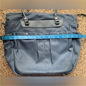 New, never used MZ Wallace Mayfair Bedford Moonstone Blue - grey large Tote with Crossbody strap. Small mark on one pocket. Roomy bag. Comfortable on the shoulder. Holds a laptop, water bottles, has inside pouch and multiple pockets
