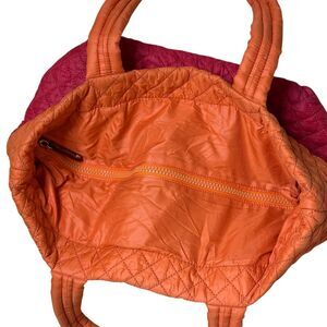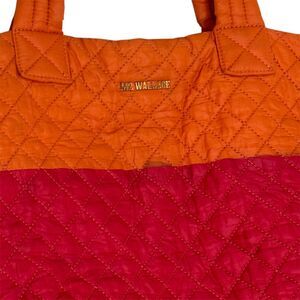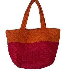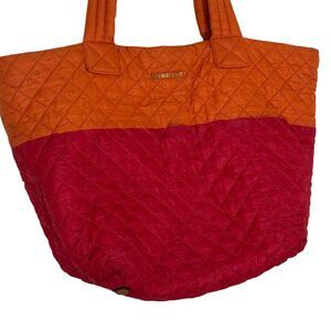 MZ Wallace Metro Tote Bag Purse Quilted Nylon ColorBlock Orange Red bv
