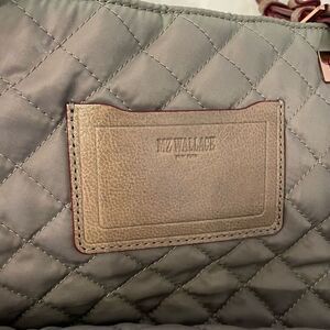 MZ Wallace Quilted Tote Shoulder Bag Grey travel commute Lightweight