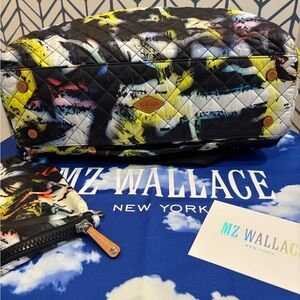 Discover the vibrant style of the MZ Wallace Women's Quilted Bag. This multicolor bag combines functionality with a bold design, perfect for any occasion. Hinted with Italian leather accents includes MZ dust bag, MZ graffitti pouch, adjustable crossbody strap. Bag includes luggage sleeve for a super hot look in the airport. Great size to utilize as a gym bag or large carry tote for teachers etc. Rare find sold out and high demand print. Vibrant colors. Dimensions shown in photos, flexible bag with quilted fabric so dimensions are approximate depending on what you are carrying. No tears, no odors, flawless interior and print. E Excellent used condition, I carried twice.
