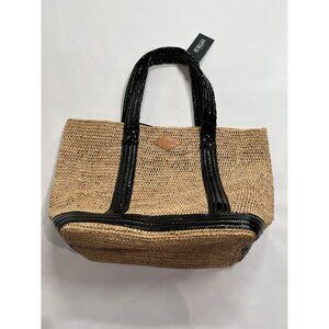 MZ Wallace Raffia Tote in Raffia/Black Lacquer