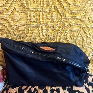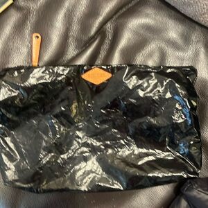 Glossy black MZ Wallace pouch with a brown logo patch. Ideal for storing essentials. Three included!!
