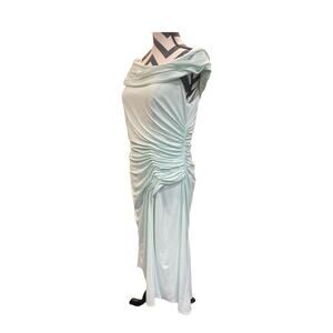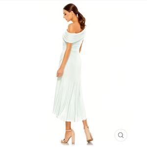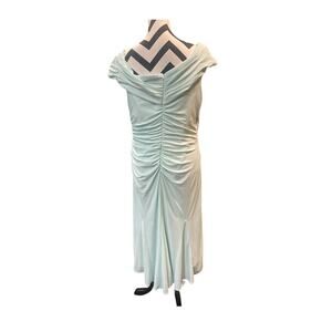 MaC Duggal by Ieena RUCHED OFF-THE-SHOULDER MIDI DRESS Light Blue SZ.14