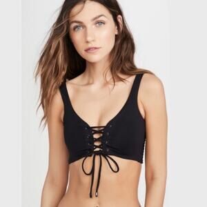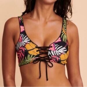 Maaji $79 Hat Black Dazzling Reversible Lace Up Bikini Top sz SMALL