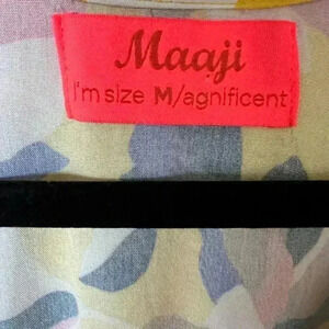 Maaji Anemone Yellow Maxi Dress. In excellent condition. Does not have a split up the side. Description is in the photos. Split neckline with button closure. Drawstring waist. Unlined. Front slit with bell flared sleeves.