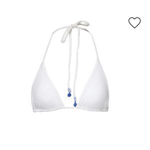 Balmy triangle bikini top features textured fabric and offers removable cups and adjustable ties at neck and back.