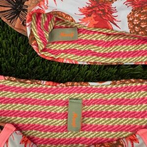 Maaji Bikini Beach Off Shoulder Pink Ruffle Yellow Pineapple Swimsuit Womens S/M