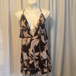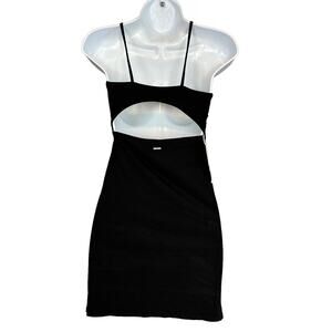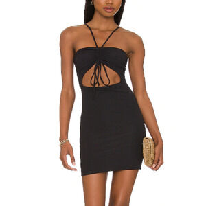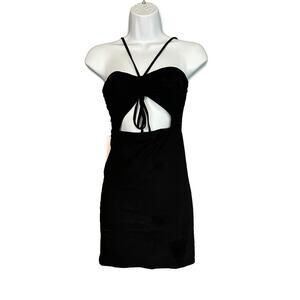 Maaji Black Cut Out Mini Dress MEDIUM Bodycon Ruched Vacation Halter Club NEW
