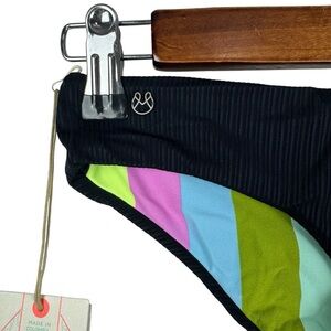 NEW Maaji Women's XS Black & Multicolor Vertical Stripes Reversible Stretchy Swim Bikini Bottom