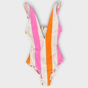 Maaji Brooke Polo Stripe Reversible One-Piece Swimsuit Size Small