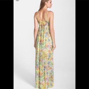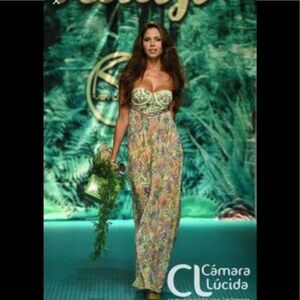 Sweeter than honey in this flirty floral maxi. Maxi dress; Bralette style top features underwire; Corset style top criss-cross ties in back; Top is made of soft, stretch material; Bottom is made of lined mesh material; Dress falls to floor length.