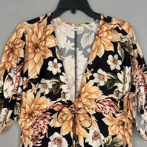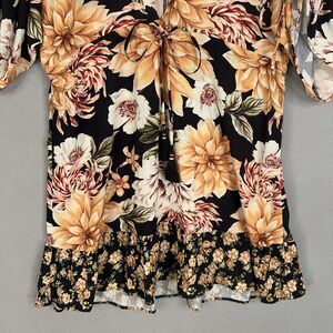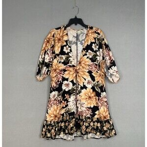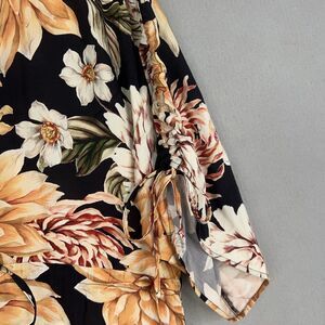 Maaji Dress Womens Small Black Yellow Floral Boho Cinch Ruffle Puff Resort