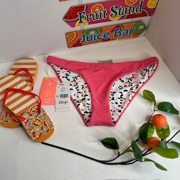 Maaji Fandango Pink Sublimity Reversible Bikini Bottoms Large
