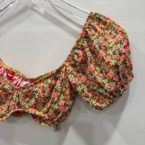 Maaji Floral Puff Sleeve Bikini Top Structured Medium