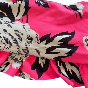 Floral multi wear bandeau bikini top with removable soft cups and ruffled detachable straps. Tie knot on one side of the bikini. Ruffled hem. The ruffles on the top as well as under the bust will make you look fun and beautiful. Feel like summer with its floral print and front knot. Pair it with other pieces in the Top Hat Magic Collection.Features: Wear 2 ways. Removable straps. Over the shoulder ruffle. Guaranteed reverse print.