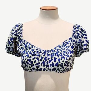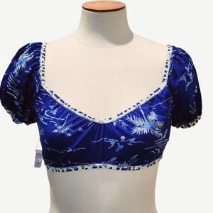 NWT.Versatile and vivacious, this bikini top features a fully reversible design and can be worn on or off the shoulder depending on your vibe. This is a 4 WAY piece, turn it inside out or take the another look, moderate coverage, short sleeves, without soft cups. Lined