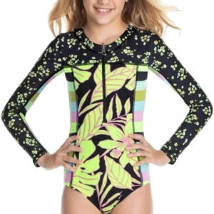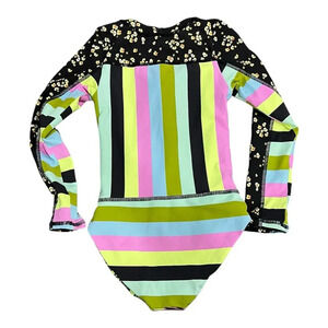 Maaji Kids Black Floral Striped Plumeria Casper Reversible One Piece Swimsuit 4