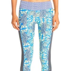 Maaji Matching Workout Set Small Sports Bra Stirrup Leggings Blue Print Beach