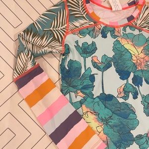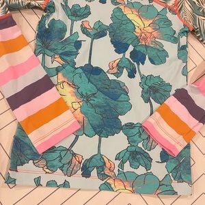 Size 12. Longsleeve multi pattern rash guard swim top. Small stain on wrist pictured. Otherwise GUC. Muted earth tones. No trades. M1-14